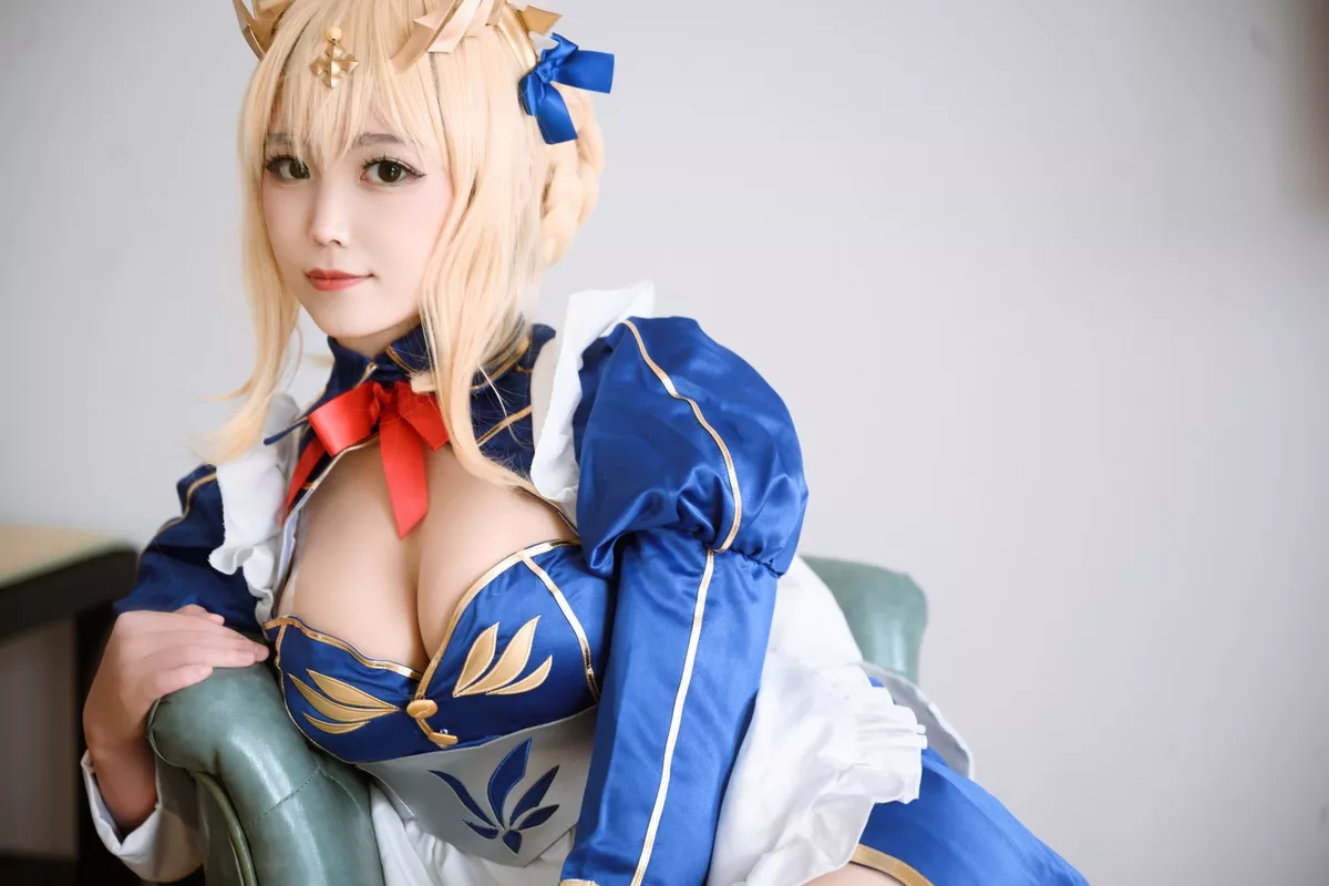微博动漫Coser焖焖碳Saber旗袍主题性感白色高开旗袍配黑丝裤袜秀美腿诱惑写真28P